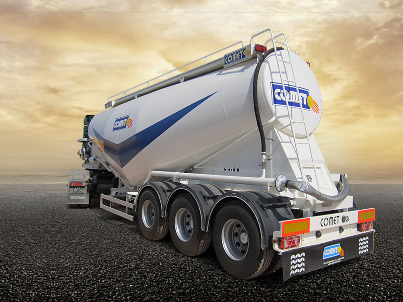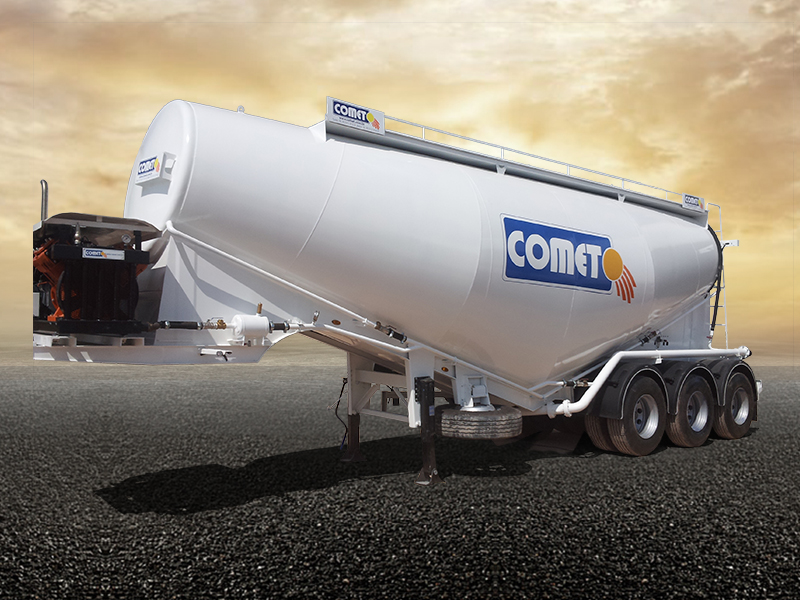 La semi-remorque citerne à ciment COMET est disponible en plusieurs modèles et volumes. On distingue deux grandes familles : la citerne en Vé et le modèle européen en multi-silos. Elles sont toutes destinées au transport de différents types de produits granulés en vrac tels que le ciment et de divers produits chimiques. Les volumes offerts varient entre 26 et 42 m³. Suivant la demande du client, la citerne peut être équipée avec un moto-compresseur permettant une autonomie de déchargement.