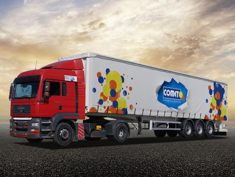 La semi-remorque plateau bâché COMET est conçue et réalisée pour le transport de divers types de marchandises spécialement les produits fragiles et volumineux ainsi que les produits sensibles aux intempéries.Son volume utile peut atteindre les 90m³ avec une maxi longueur de 13,6 mètres.Demande de devis "Semi-remorque Plateau Bâché"